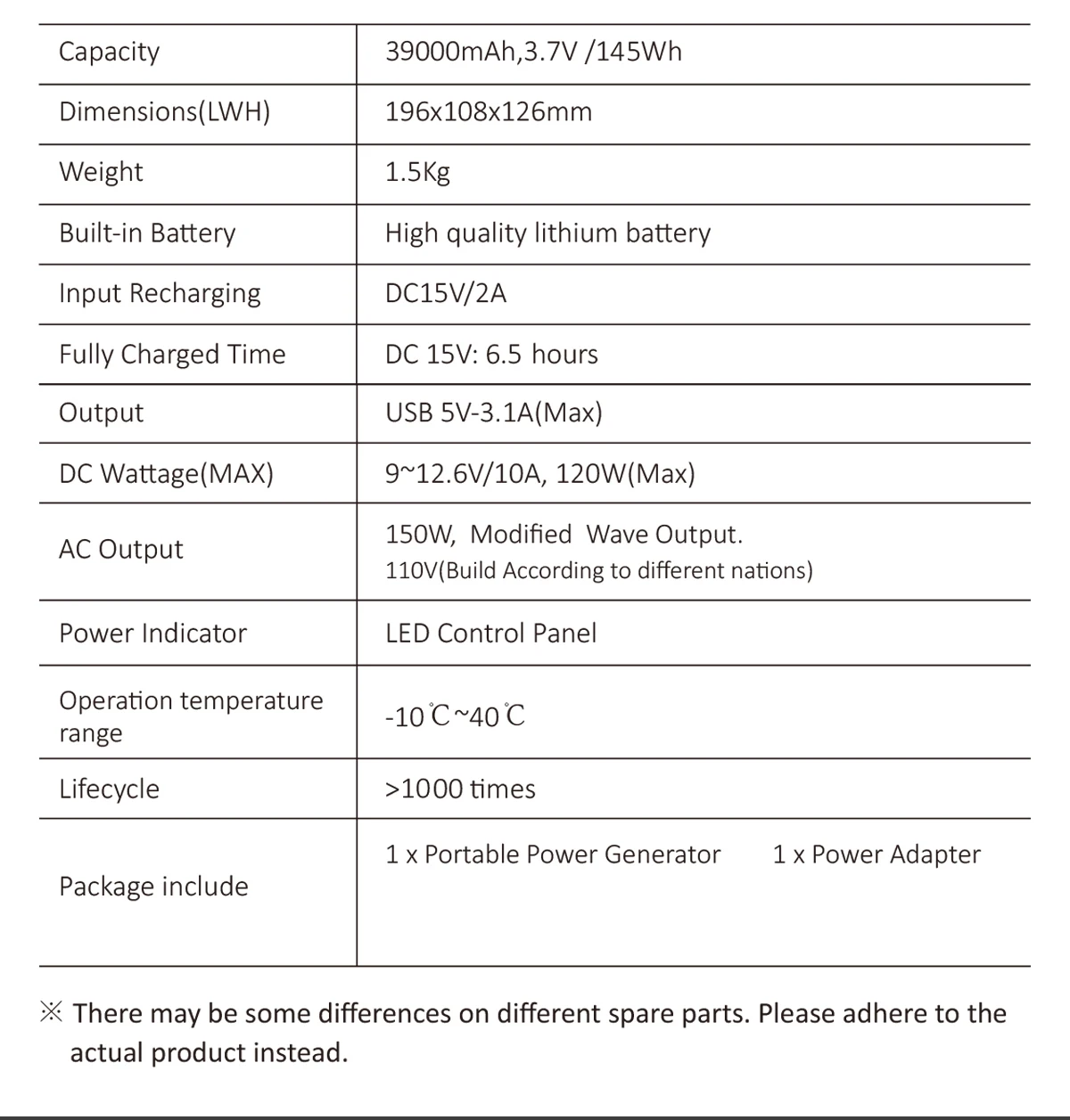 - Type : LiFePO4