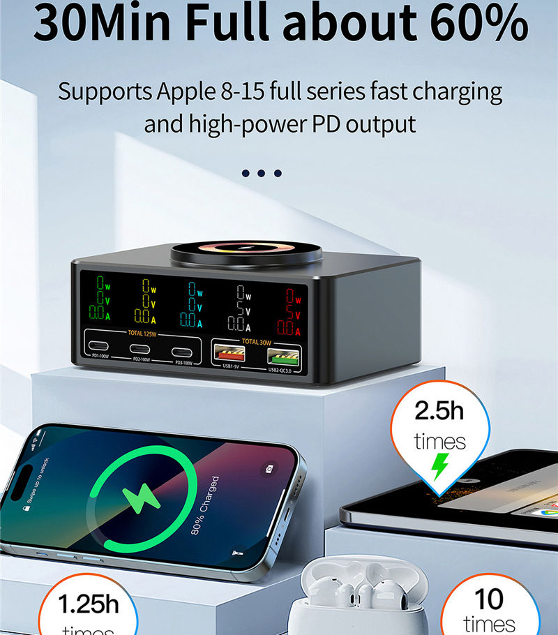 1080W USB C GaN Charger PD3.0 PPS QC3.0 Fast Charging Station Magnetic Wireless
