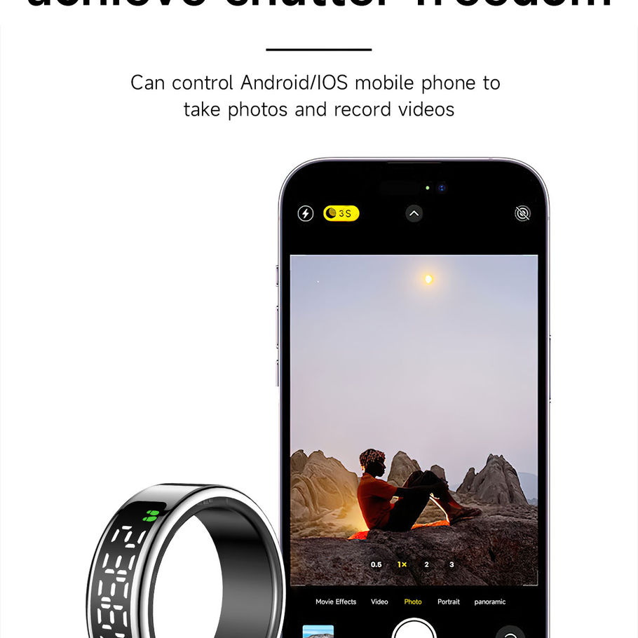 2025 New Smart Ring SY01with Touch Control LED Display Screen Heart Rate Blood