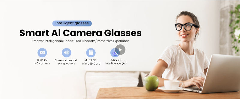 AI Intelligent Camera Glasses 1080P HD Glasses Camera Video Recording and Takin