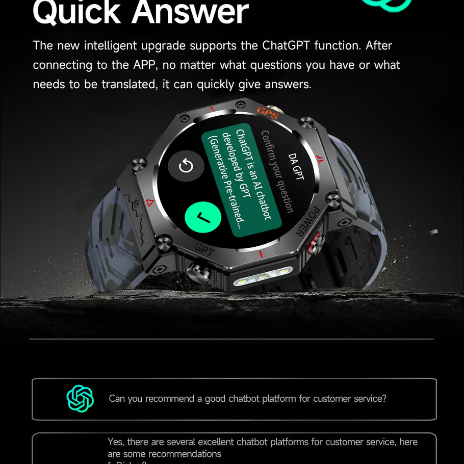 NEW ChatGPT Ai Smart Watch Bulit-in GPS Compass 5ATM Waterproof Flashlight AMOL