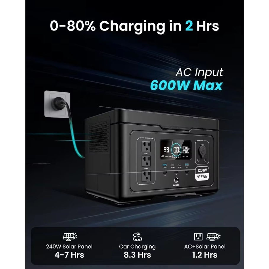Portable LiFePO4 Solar Generator 1200W 992Wh with 100W Solar Panels Dual Type-C