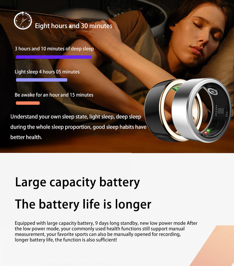 Smart Ring Waterproof Body Monitoring Exercise Heart Rate Blood Pressure Blood