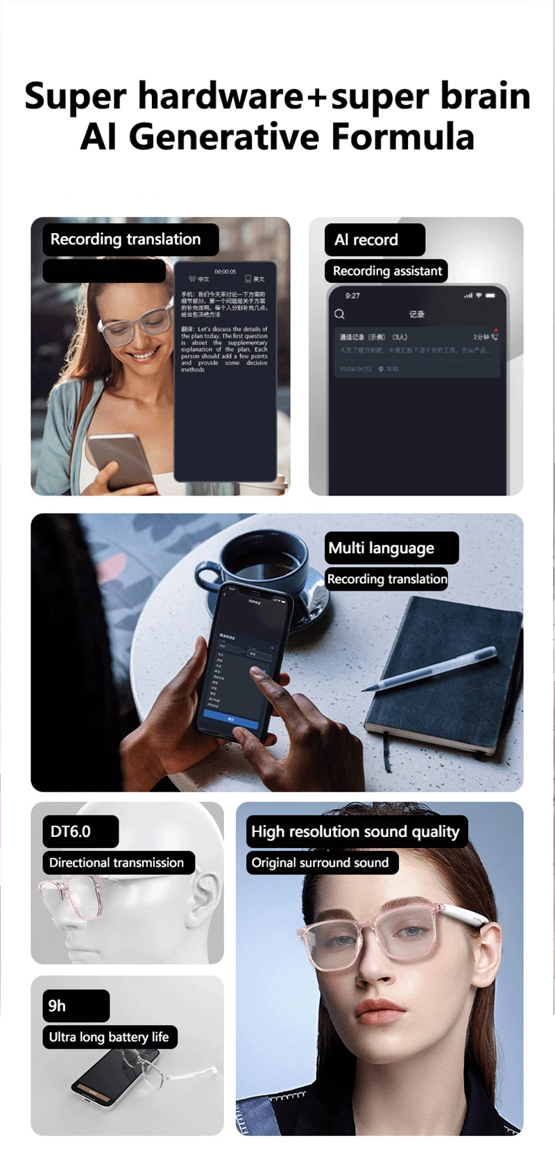 UTHAI Modern HY-C8 Intelligent AI Translation Glasses Earphones Simultaneous